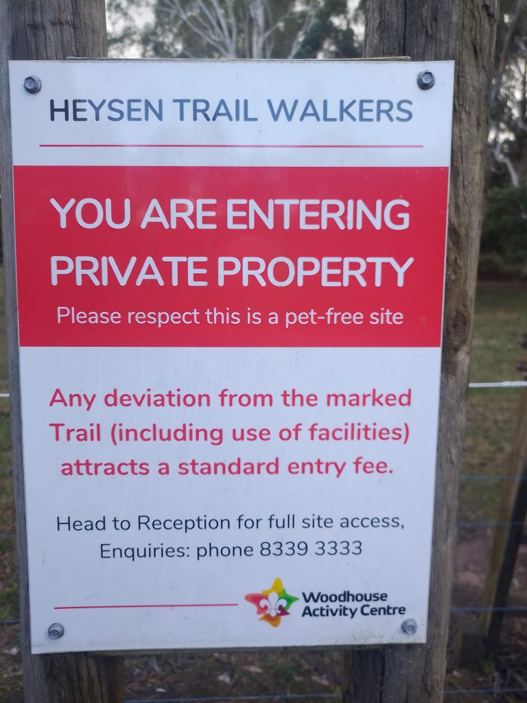 When you get one or more (so it’s useful to carry a collapsible day-pack with you) bottles at the cellar door (open 9:00 AM to 4:00 PM 7 days a week), there’s a short walk to an unlocked gate and a road into the Woodhouse Scout Activity Centre (WSAC).