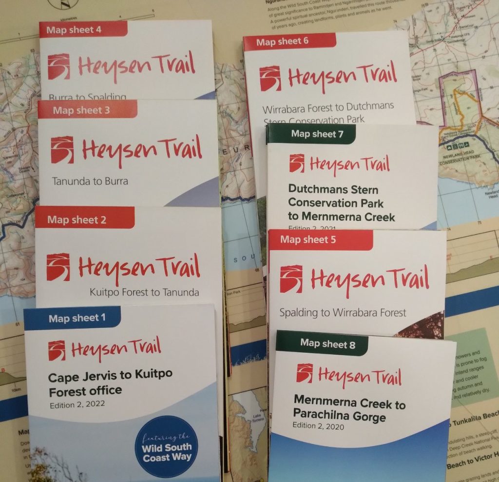 The Department for Environment and Water (DEW) has released a series of eight printed Heysen Trail mapsheets. Because the Trail needs to be rerouted from time to time, before you set out you should always check our reroutes information to see if your printed mapsheets are up to date.
